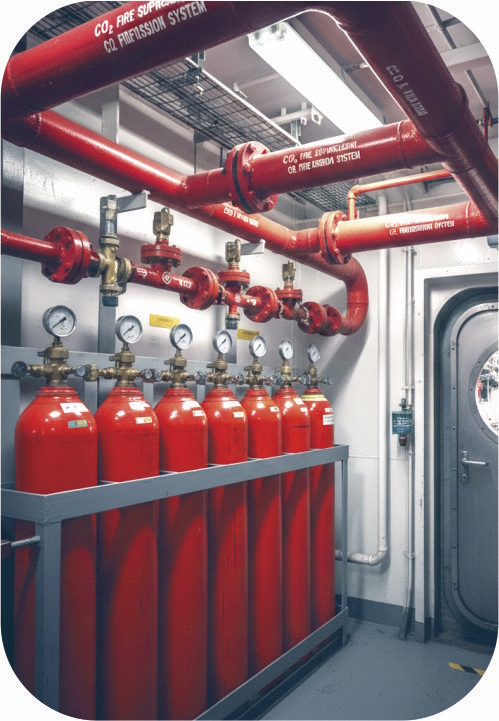 Comprehensive installation of high-pressure and low-pressure CO₂ systems for machinery spaces, cargo holds, and enclosed areas. Designed for rapid fire suppression while ensuring safety and efficiency.
